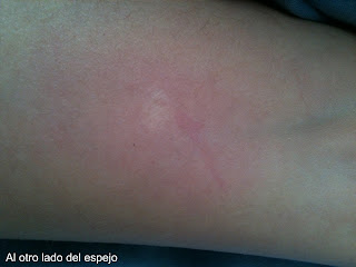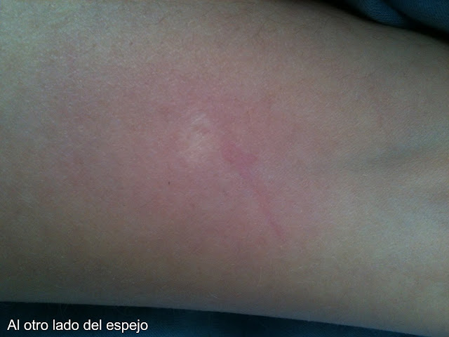 Arriba podeis ver el resultado en la piel. Yo me lo aplico antes de la base, bb cream o lo que querais, ya que tengo miedo a que me arrastre la base. No noto que me reseque la piel, pero si que noto una sensación extraña, como una grasilla extraña, aunque no es grasa. No se que tal se comportara en una piel con grasa.