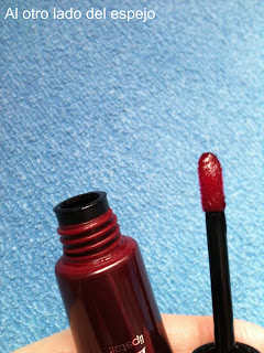 Bueno, hablemos del producto! Para empezar, es modulable, si pones mucha cantidad quedara rojisimo y con solo un par de puntitos solo das una subida de color. Decir que cuidado de poner mucha cantidad al principio porque al ser liquido, bastante liquido, puede entrar en la boca. Y si, sabe mal y tiñe los dientes... asi que no lo probeis, mejor poned capa a capa si quereis mas intensidad.