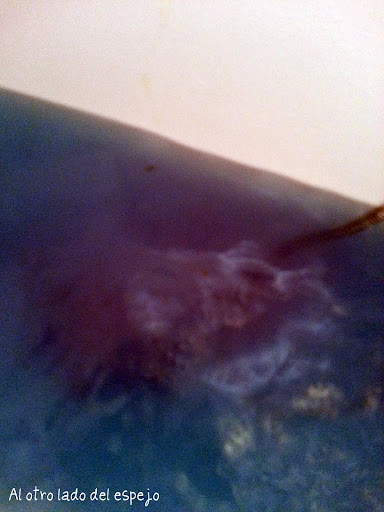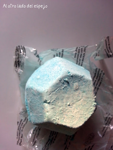 Como podeis ver deja la bañera totalmente azul, pero dentro nos encontramos con un cuadradito morado. Este se empieza a disolver tambien y deja un azul morado bastante bonito.