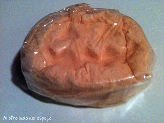 Deja la bañera totalmente naranja y tiene un olor dulce extraño. Me recuerda un poco a la sopa de calabaza que hacen los suizos en otoño (kürbissuppe) que por cierto me la cene el sabado y esta buenísima. Pues es que recuerda mucho a esa sopa, por su olor dulce. Creo que os gustara mucho esta bomba. Eso si, relaja bastante no como las otras dos.